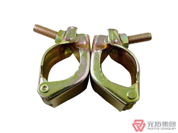 腳手架扣件的生產方法包括蓋板及中間部的熱壓工藝生產方法。蓋板的生產方法為:由鋼板經沖壓機出成毛坯后,將毛坯加熱,用沖壓機沖出蓋板的形狀,工件冷卻后入沖孔沖壓機沖出螺栓孔,然后將工件放到撅嘴機上,在開口孔的外側兩邊各撅起一凸起后成型。