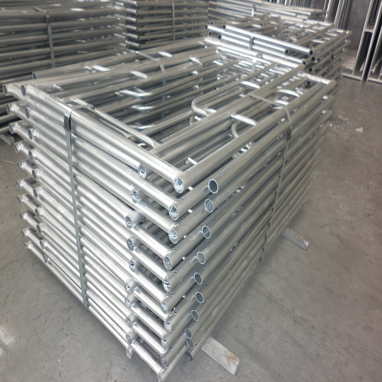 一、門式腳手架制作之外觀要求1.熱鍍鋅鋼管里外熱鍍鋅,表面鍍鋅要均勻無明顯下次,普通鋼管的表面要求無裂紋、凹凸、銹腐,加工前初始彎曲要小于L/1.000 (L等于長度,鋼管不得接長使用);2.對(duì)于水平架、鋼梯及腳手板而言,搭鉤必須用焊接或鉚接牢固;