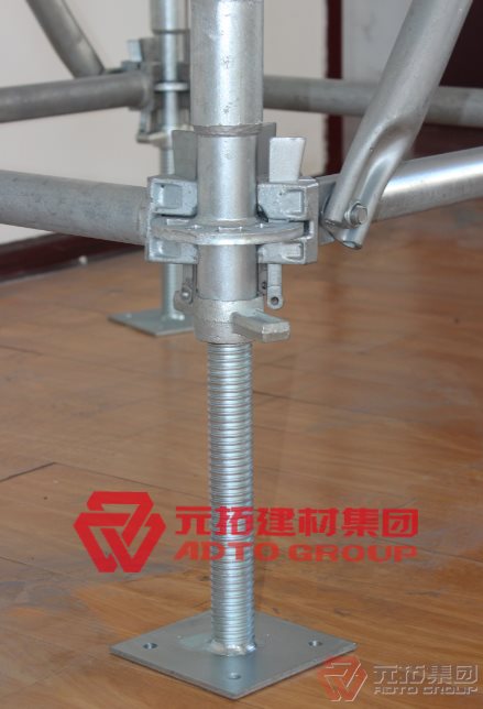 1、盤式腳手架搭設(shè)前,對(duì)基礎(chǔ)平面進(jìn)行檢查,采取拉線的方式進(jìn)行找平保證腳手架下托在同水平面之內(nèi),保證腳手架的受力均勻,施工中保證各個(gè)連接點(diǎn)的緊密安放,嚴(yán)禁虛接的情況出現(xiàn)。